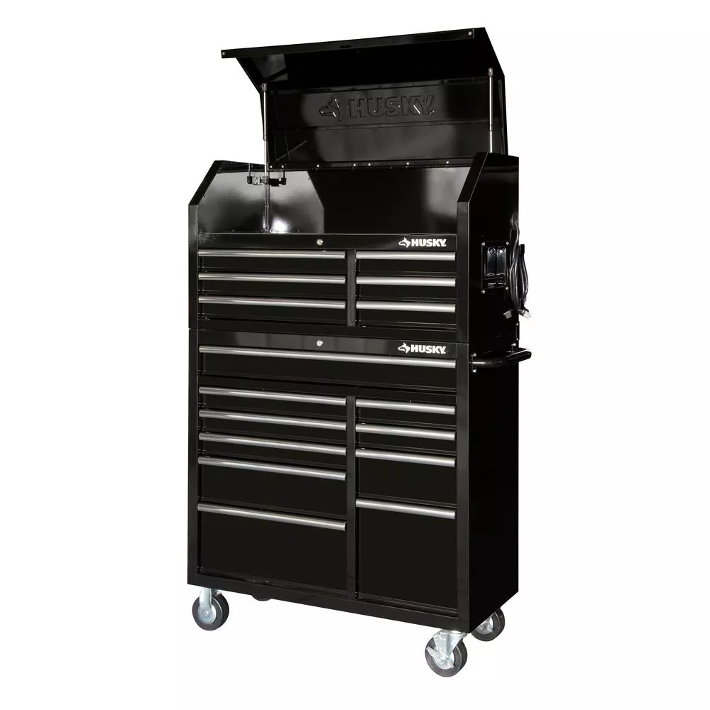 41 IN. X 24.5 IN D 16-DRAWER GLOSS BLACK TOOL CHEST UND CABINET COMBO