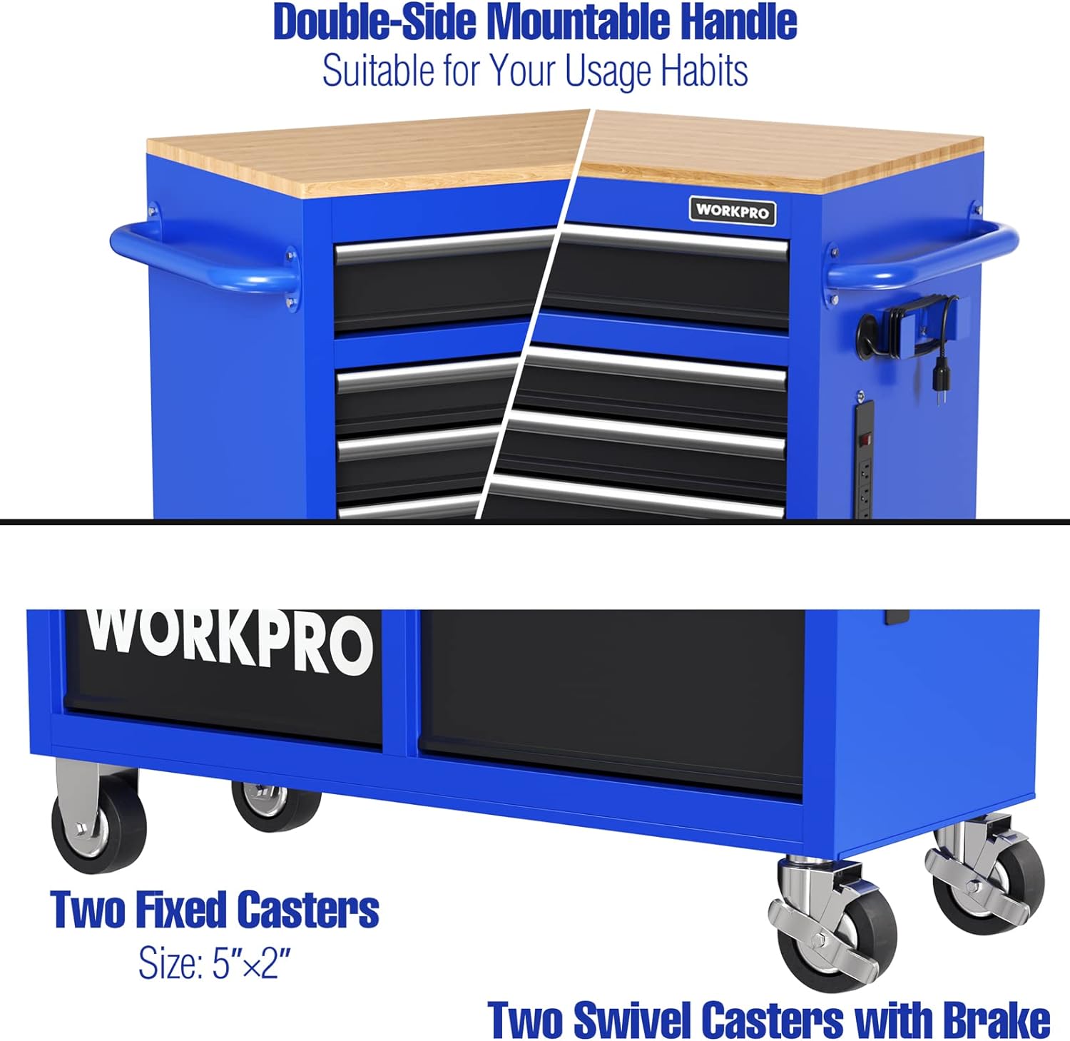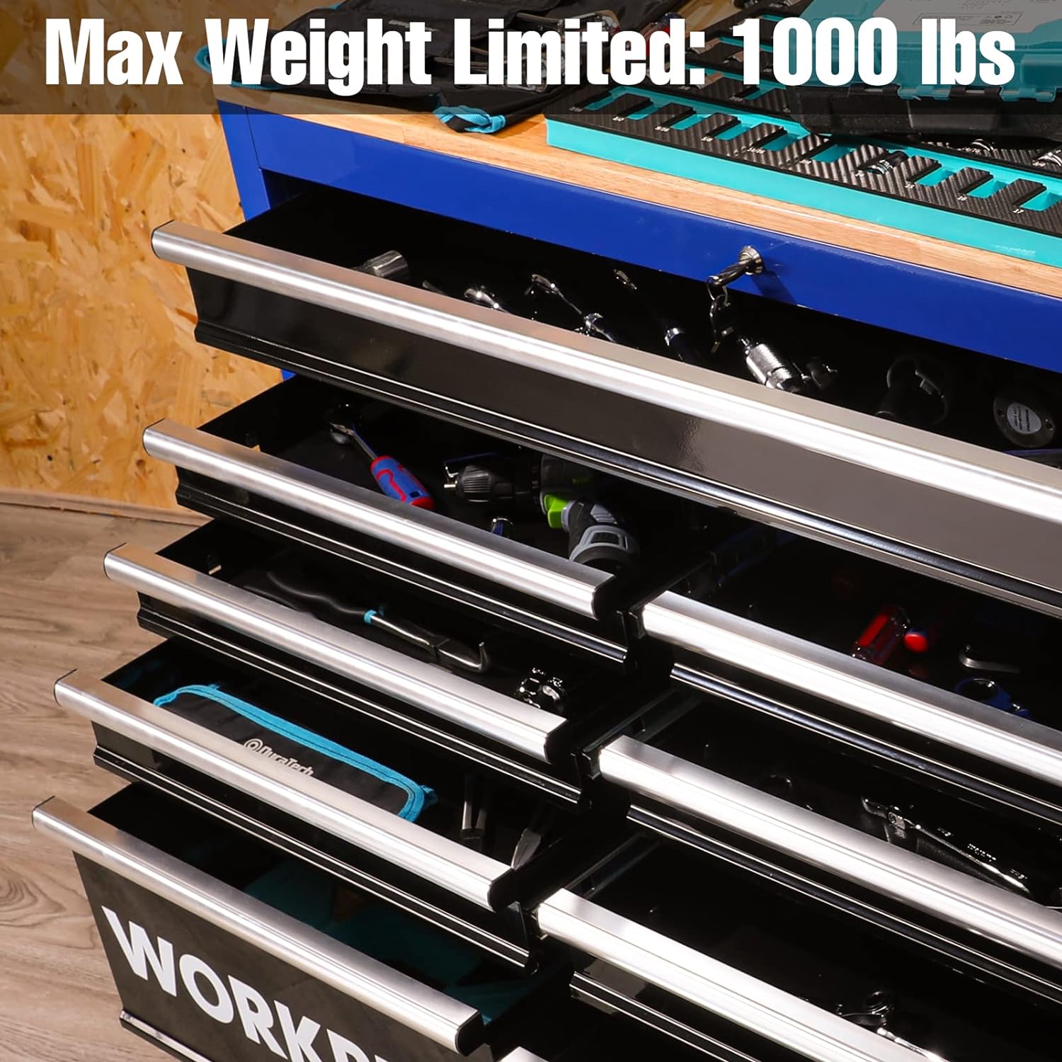 EXTREME TOOLS RX SERIES 55" 12-DRAWER ROLLER - BLACK W/BLUE DRAWER PULLS