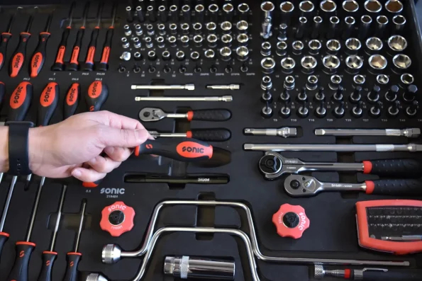 EXTREME TOOLS RX SERIES 55" 12-DRAWER ROLLER WITH HUTCH AND SIDE BOXES